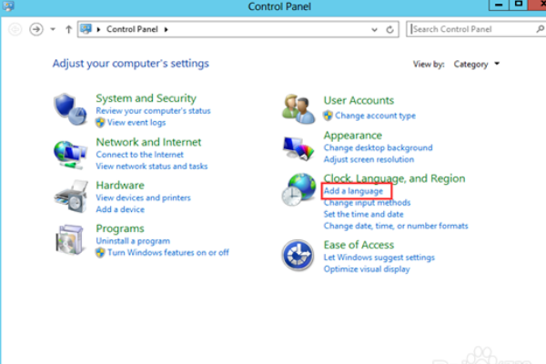 7、安装完成后,打开控制面板“control panel”,点击”add a language”;